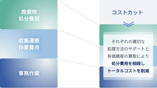 有価資産の買取により、処分費用を相殺することでトータルコストを削減。