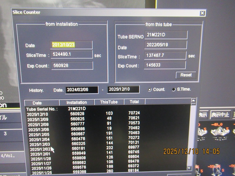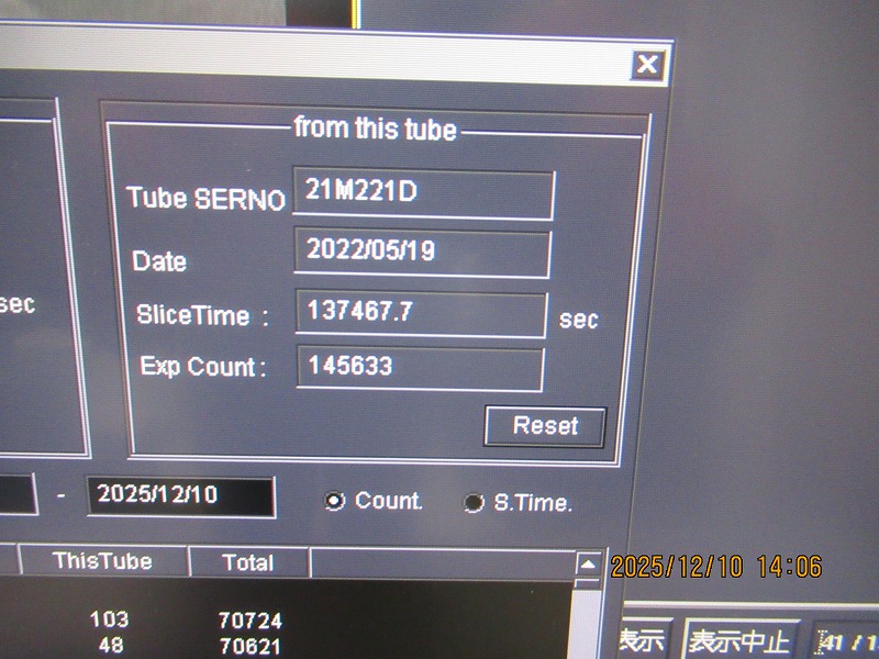 The tube count WILL BE approx. 150K sec / 159K count (when removed)